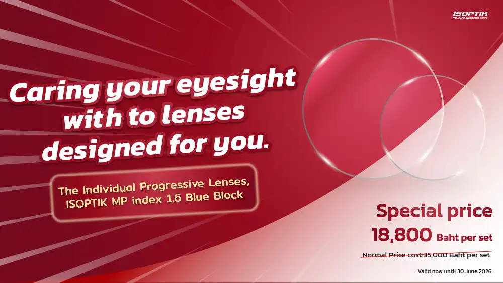 Remark : Digital 3D Eye examination + Trial Lenses set 12 levels + Eye health checked from optometrist charge 1,000 Baht