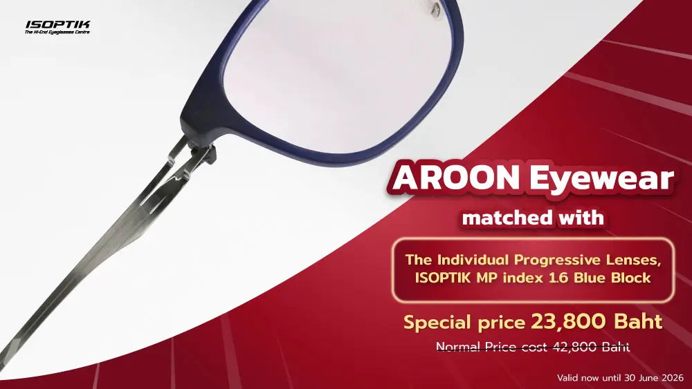 2. ISOPTIK MP Progressive Lenses index 1.6 Blue Block from Germany Lab produced by Rodenstock and Zeiss using ISOPTIK exclusive formula. Regular price 35,000 baht per pair.