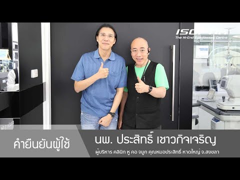 " ผมคุณหมอประสิทธิ์ เชาวกิจเจริญ นะครับ อายุ 55 ปี ผมเป็นคุณหมอเฉพาะทางหู คอ จมูก อยู่ที่หาดใหญ่ จังหวัดสงขลาครับ ชื่อคลินิก หู คอ จมูก คุณหมอประสิทธิ์ หาดใหญ่ครับ เนื่องจากผมต้องใช้สายตาทั้งการตรวจคนไข้ การเขียนหนังสือ การผ่าตัด ทำให้ต้องเปลี่ยนแว่น ถอดเข้า ถอดออกหลายครั้ง ผมไม่ค่อยสะดวกครับ ผมก็เคยใช้แว่นมาหลายแห่งแล้วครับ ผมรู้สึกว่ามันยังไม่ตอบโจทย์