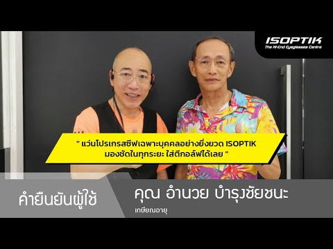 หลังจากที่ได้แว่นโปรเกรสซีฟเฉพาะบุคคลอย่างยิ่งยวด ISOPTIK ไปใส่แล้ว ก็ใช้งานได้ดี สบายตา มองชัดในทุกระยะ ดูโทรศัพท์มือถือได้โดยไม่ต้องขยายตัวหนังสือ ทุกวันเสาร์ผมจะไปตีกอล์ฟตอนเช้าทุกวัน ใส่แว่นโปรเกรสซีฟ ISOPTIK ตีกอล์ฟได้เลย