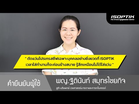 แฟนที่เป็นแพทย์ ไปหาข้อมูลค่ะ ถ้าเวลาเรามีปัญหาเรื่องสายตา ตัดแว่นที่อื่นแล้วยังใส่ไม่ค่อยดี จะหาที่ไหนดี ก็เลยลองมาที่ศูนย์เลนส์โปรเกรสซีฟเฉพาะบุคคลอย่างยิ่งยวด ISOPTIK ดูค่ะ