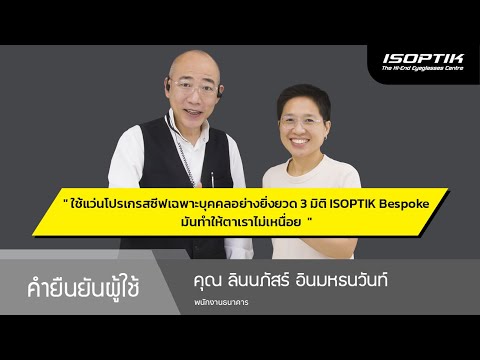 สิบปากว่าไม่เท่าตาเห็นค่ะ มันต้องมาลองใช้เองแล้วมันถึงจะรู้ว่ามันดีอย่างไร การมาที่นี่มาจากน้อง น้องเขาก็ใส่แว่นโปรเกรสซีฟเฉพาะบุคคลอย่างยิ่งยวด 3 มิติ ISOPTIK Bespoke น้องเขาใช้แล้วดีก็เลยมาบอกเอ๋ต่อ ตอนแรกพี่ก็กล้าๆ กลัวๆ เหมือนกันว่ามันจะดีไหม แต่พอใช้แล้วอะค่ะ มันถึงได้รู้ว่ามันคุ้มกับที่เราลงทุนไป