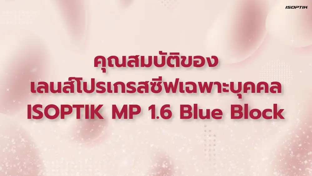 คุณสมบัติเลนส์โปรเกรสซีฟเฉพาะบุคคล ISOPTIK MP ย่อบาง 1.6 Blue Block