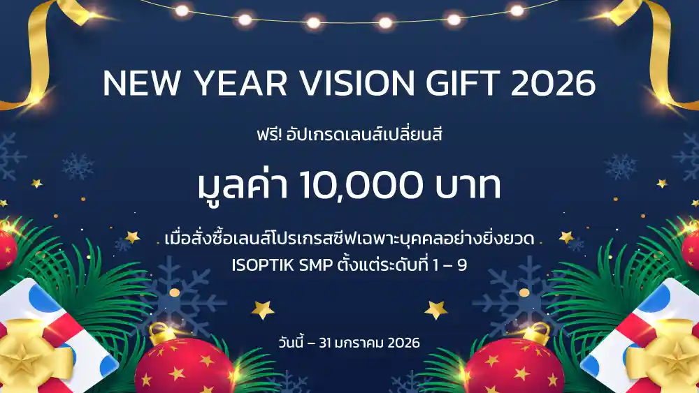 NEW YEAR VISION GIFT 2026 : เลนส์โปรเกรสซีฟ ISOPTIK SMP เริ่มต้น 33,800.- ฟรี! อัปเกรดเลนส์เปลี่ยนสี ( จำกัด 50 คู่ )