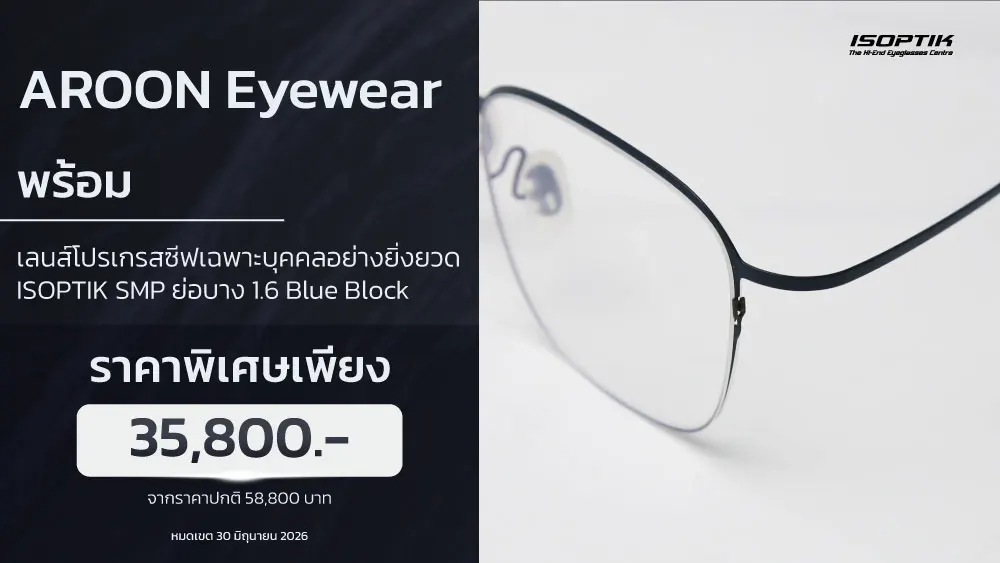 กรอบแว่น AROON LIGHTWEIGHT จับคู่กับ เลนส์โปรเกรสซีฟเฉพาะบุคคลอย่างยิ่งยวด ISOPTIK SMP 1.6 Lab เยอรมัน