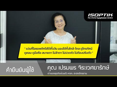 ชื่อ เปรมพร จิระเวศยารักษ์ ค้าขายจักรยาน อายุ ปี เริ่มใส่แว่นตอน 40 กว่าปี ตัดแว่นใหม่ ๆ แต่ก่อนใช้ไม่ได้เลย เวียนหัว เมา ตอนหลังก็ใช้ แต่เฉพาะดูหนังสือ