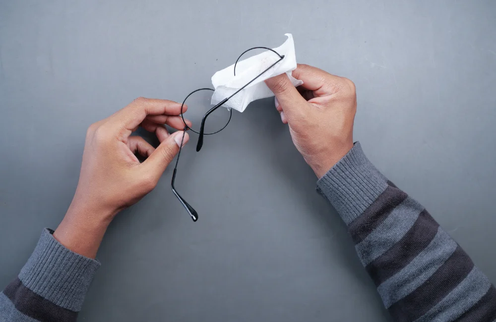 - เช็ดแว่นตาให้แห้งทุกครั้งหลังใช้งาน โดยเฉพาะบริเวณที่สัมผัสกับผิวหนัง เช่น จมูก และขาแว่น เพื่อลดการสะสมของเหงื่อและความชื้น