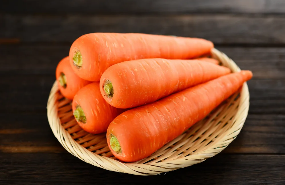 แครอทอุดมไปด้วยเบต้าแคโรทีน ที่ร่างกายจะเปลี่ยนเป็นวิตามินเอ ช่วยให้ดวงตาชุ่มชื้นขึ้น ลดอาการตาแห้ง และยังป้องกันโรคตาบอดกลางคืนได้ดี จะกินแครอทสด ๆ ทำเป็นซุปแครอทร้อน ๆ ดื่มตอนเช้า หรือใส่ในสลัดก็ได้ประโยชน์เหมือนกัน