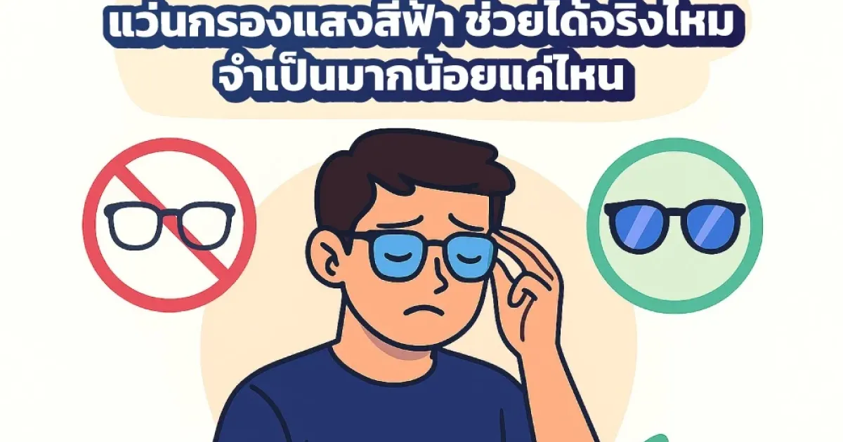 แว่นกรองแสงสีฟ้ากำลังเป็นที่นิยมในหมู่คนที่ต้องใช้หน้าจอคอมพิวเตอร์ โทรศัพท์ หรืออุปกรณ์ดิจิทัลเป็นประจำทุกวัน แต่ในขณะเดียวกันก็มีคำถามตามมาว่า แว่นกรองแสงสีฟ้า ช่วยได้จริงไหม และจำเป็นต้องใช้หรือไม่ เรามาหาคำตอบกันในบทความนี้