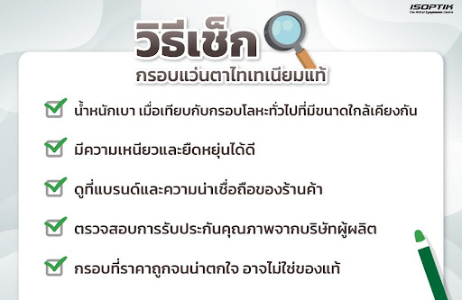 • หากเจอกรอบแว่นตาไทเทเนียมที่ราคาถูกจนน่าตกใจ ให้สันนิษฐานไว้ก่อนว่าอาจไม่ใช่ของแท้