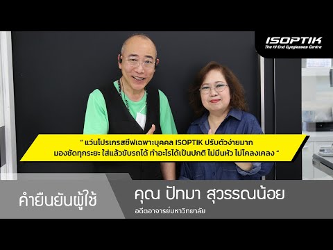 อันนี้ขึ้นอยู่กับการตัดสินใจของแต่ละบุคคล คนที่เขาไม่ได้มีเวลา เขาอาจจะเอาง่ายๆ คือว่าเดินเข้าห้าง เห็นร้านแว่นก็เข้าไป ซึ่งอันนั้นก็ทำมาหมดแล้วทุกอย่าง ตอนหลังพอมาทำที่ ISOPTIK เราก็รู้สึกว่า อือ! สิ่งที่เคยเห็น เคยได้รับมันมา ตรงนี้มันต่างกว่า ต่างกว่าที่การเอาใจใส่ กว่าจะได้แว่นโปรเกรสซีฟเฉพาะบุคคล ISOPTIK อันหนึ่ง มันก็ไม่ได้นานอะไรมากนะคะ แต่ว่าดูแลดี วันนี้มาเป็นครั้งที่สอง หลังจากตัดแว่นที่นี่แล้ว ก็ถือว่าบริการหลังการขายดีมาก