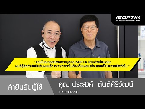 ก็มีเพื่อนหลายคน มีญาติ มีพี่สาวผมก็แนะนำให้มาทำแว่นโปรเกรสซีฟเฉพาะบุคคลที่ไอซอพติก เพราะว่าอย่างน้อยสุด มันก็ไม่ได้ว่าจะแพงเวอร์อย่างที่ว่า ก็ประมาณหมื่นกว่าบาท ซึ่งเราสามารถได้คุณภาพที่ดีขึ้น สบายขึ้น และเราสามารถมองเห็นได้ชัดขึ้นในเวลาเดียวกัน