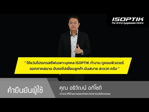 ศูนย์แว่นตาโปรเกรสซีฟเฉพาะบุคคลอย่างยิ่งยวด ไอซอพติก แตกต่างจากร้านแว่นอื่นเยอะครับ ที่นี่ให้ความสำคัญกับเรื่องการตรวจสายตาเยอะมาก ก่อนที่จะมาที่นี่ผมใช้แว่นตามาเป็น 10 ปี เราก็จะเจอร้านแว่นตาหลากหลาย แต่ที่นี่ให้ความสำคัญตั้งแต่แรกเลย 3 ชั่วโมงอะครับ ในการที่เราจะตรวจสอบสายตาเรา ผมว่ามันเป็นเรื่องที่ดีมาก เวลาเราใช้สายตา เป็นเรื่องจำเป็น แล้วเราต้องการความเที่ยงตรง และก็ความแม่นยำสูง เพราะฉะนั้นพอเรามาได้ที่นี่แล้ว มันทำให้เรามีความมั่นใจในการที่ใช้แว่นโปรเกรสซีฟเฉพาะบุคคล ISOPTIK ทำงาน หรือเราจะดูคอมพิวเตอร์ ออกภาคสนาม ขับรถไปเยี่ยมลูกค้า ไปเยี่ยมทีมเราที่อยู่แต่ละที่ครับ มันสบาย มันทำให้เราสะดวก ไม่ต้องกังวลเยอะ