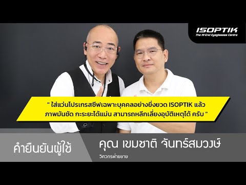 ถ้าคนไม่เคยลอง อยากให้ลองมาปรึกษาดู ผมเคยมีประสบการณ์คือ ภาพมันไม่เคลียร์ แล้วมันทำให้เกิดอุบัติเหตุนะครับ แต่ว่าพอใส่แว่นโปรเกรสซีฟเฉพาะบุคคลอย่างยิ่งยวด ISOPTIK แล้ว ภาพมันชัด ทุกอย่างมันเคลียร์ มันกะระยะได้แม่น เพราะงั้นมันสามารถหลีกเลี่ยงอุบัติเหตุอะไรได้ครับ "