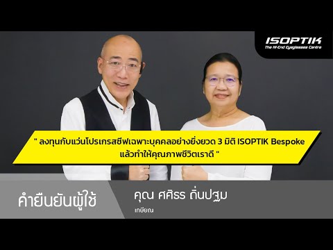 ถ้าเรามีศักยภาพพอที่จะลงทุนกับแว่นโปรเกรสซีฟเฉพาะบุคคลอย่างยิ่งยวด 3 มิติ ISOPTIK Bespoke แล้วทำให้คุณภาพชีวิตเราดี ทำไปเถอะ ซึ่งมันตอบโจทย์ แล้วมันก็ดีจริงๆ ทางร้านก็มีบริการที่ดีทั้งหน้าร้าน หรือแม้กระทั่งการโทรศัพท์มาสอบถามถาม บริการหลังการขายทุกอย่างเลย ดีค่ะ "