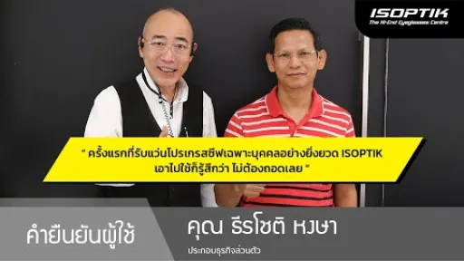ISOPTIK แว่นโปรเกรสซีฟที่ทำให้โลกสดใส! คุณโสภณ (ใส่แว่น 50 ปี) รีวิว: แก้ปัญหาสายตาสั้นมาก/ตาเขซ่อนเร้น แว่นใหม่ไม่เวียนหัว ไม่ต้องปรับตัวนาน คุ้มค่า คุณภาพตามราคา.