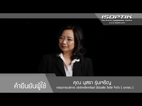 ปรมาจารย์โบบิ : ปกติ คุณ นุสรา เป็นคนสายตาสั้นค่อนข้างเยอะ และแก้ปัญหาโดยการใส่คอนแทคเลนส์ และก็ใส่ตลอดเป็นเวลา 30 ปี พอเริ่มเข้าเลข 4 ก็จะเริ่มมีปัญหาการมองใกล้ เวลาใส่คอนแทคเลนส์มองใกล้ก็เริ่มไม่ชัดต้องยื่นระยะออก ต้องเพ่งและก็ไม่สบายตา โดยเฉพาะงานของท่าน ท่านอยู่ในบริษัทหลักทรัพย์ ท่านจะต้องดูตัวเลขกับหน้าจอคอมพิวเตอร์ และดูเอกสารเยอะมาก พอเข้ามาปรึกษาที่ไอซอพติก เราก็ทำการวิเคราะห์ค่าสายตา และออกแบบเลนส์โปรเกรสซีฟที่ดีที่สุดให้กับท่านใส่ พอท่านได้ลองใส่เลนส์โปรเกรสซีฟที่เราทำให้ปรากฏว่า มันเกิดปรากฏการณ์ชัดทุกระยะในเสี้ยววินาที และก็รู้สึกสบายอย่างที่ไม่เคยเป็นมาก่อน จนเดี๋ยวนี้ คุณ นุสรา ท่านก็ไม่ได้กลับไปใส่คอนแทคเลนส์อีกเลยครับ