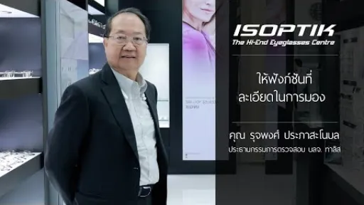 พอเราสายตายาว บางครั้งผมมองไปไกล ผมจะมองไม่ค่อยชัดหรือตอนผมไปประชุมห้องใหญ่ๆ หรือผมต้องขึ้นไปพูดและมีเอกสารให้ผมอ่าน ผมต้องหยิบแว่นตามาใส่ หลังประชุมเสร็จแล้วผมจะถอดแว่นตาออก แต่แว่นตาโปรเกรสซีฟเฉพาะบุคคคล ระบบดิจิตอล 3 มิติ เทคโนโลยีใหม่ ของศูนย์แว่นโปรเกรสซีฟเฉพาะบุคคล ไอซอพติกอันนี้ พอเราใส่แล้วเราสามารถที่จะมองระยะใกล้ได้ และพอเหลือบตาไปมอง เราก็จะเห็นไกลๆ เหมือนปกติ